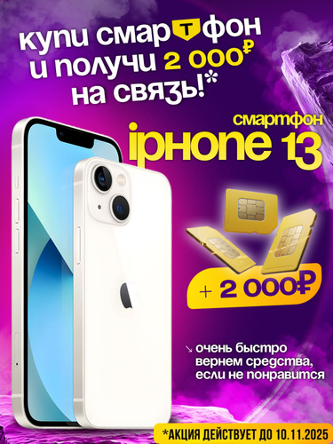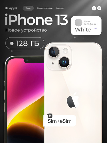 Apple Смартфон iPhone 13 - SIM+eSIM (новый, не активирован, Face Time работает, eSIM поддерживается) - Global 4/128 ГБ, белый