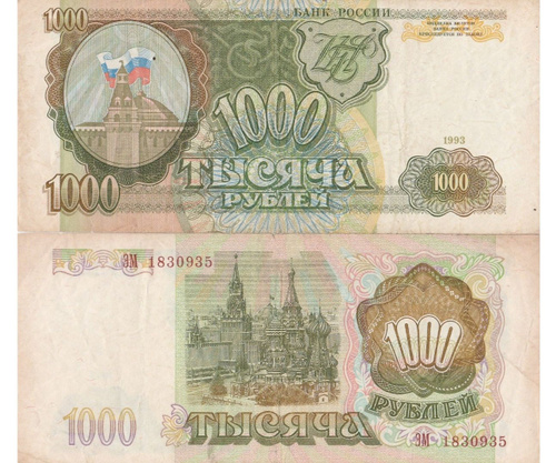 Банкнота России 1000 рублей 1993 года из обращения.
