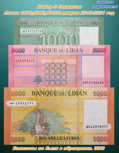 Ливан. Банкноты 1000,5000,10000 ливров 2016-2021 года . Набор 3 штуки. UNC