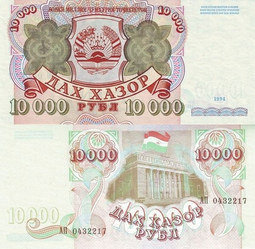 Таджикистан 10000 рублей 1994 Здание парламента UNC