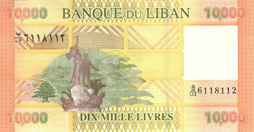 Банкнота номиналом 10000 ливров. Ливан. 2014 год