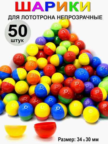 Шары для лототрона разъемные пластиковые, 50 шт. Шарики для лотерейного барабана. Капсулы для лототрона. Шарик разноцветный, диаметр 30х34мм, непрозрачный