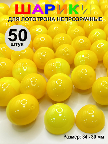 Шары для лототрона разъемные пластиковые, 50 шт. Шарики для лотерейного барабана. Капсулы для лототрона. Шарик желтый, диаметр 30х34мм, непрозрачный