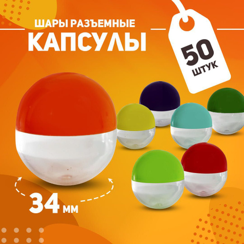 Шары - капсулы 34 мм разъемные пластиковые разноцветные для лототрона, вендинговых аппаратов и рукоделия (50 шт)., Шарик для лотерейного барабана