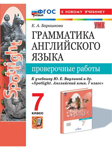 Барашкова Елена Александровна: Spotlight. Грамматика английского языка. 7 класс. Проверочные работы. К учебнику Ваулиной Spotlight 7 класс" (М.: Express Publishing: Просвещение) Экзамен 2025