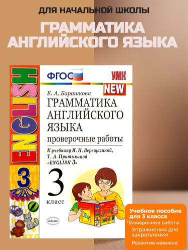 Барашкова Грамматика английского языка 3 класс ПРОВЕРОЧНЫЕ РАБОТЫ К учебнику Верещагиной ЭКЗАМЕН | Барашкова Елена Александровна