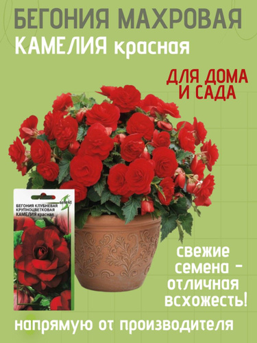 Бегония крупноцветковая Камелия, красная, 10 семян