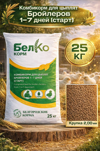 Комбикорм для цыплят-бройлеров "Старт" 25кг., Белгород/Комбикорм "Старт" для цыплят-бройлеров от 1 до 7 дней