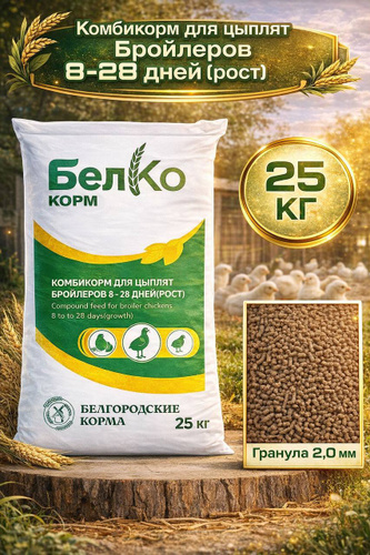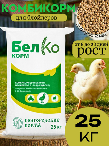 Комбикорм для цыплят-бройлеров "Рост" 25кг., Белгород/Комбикорм "Рост" для цыплят-бройлеров от 8 до 28 дней