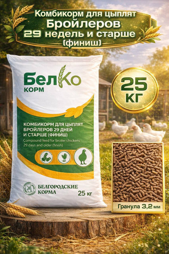 Комбикорм для цыплят-бройлеров "Финиш" 25кг., Белгород/Комбикорм "Финиш" для цыплят-бройлеров от 29 дней и старше