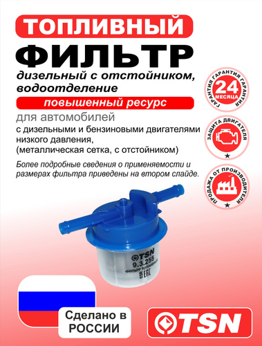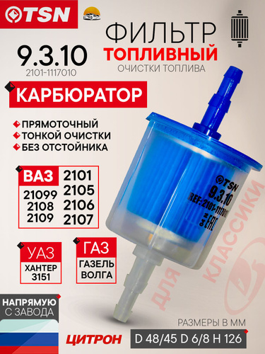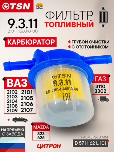 Топливный фильтр ВАЗ Карбюратор 2101 / 2103 / 2104 / 2105 / 2106 / 2107 / 2108 / 2109 / Газель 3302 TSN 9.3.11 грубой очистки с отстойником
