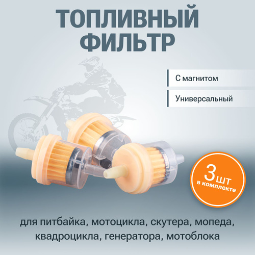 Топливный (бензиновый) фильтр с магнитом 3шт для мопеда, мотоцикла, скутера, питбайка, квадроцикла, генератора