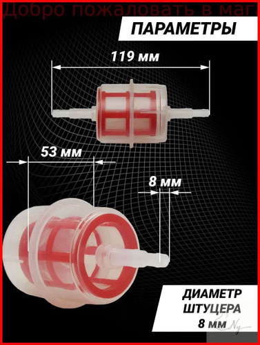 Топливный (бензиновый) фильтр с магнитом для мопеда, мотоцикла, скутера ,питбайка, квадроцикла, снегохода, мотоблока, генератора.