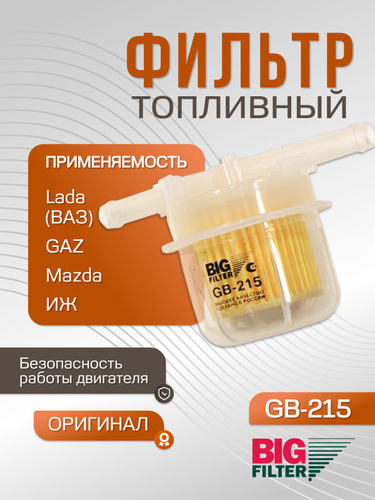 Фильтр топливный BIG FILTER GB-215 пластик для Hyundai Solaris Accent, KIA Rio, Chevrolet Aveo, Renault Logan Sandero