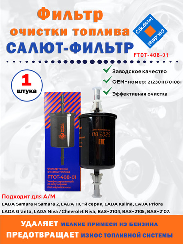 Фильтр топливный Салют FTOT 408-01, ВАЗ 2110-2115, Приора, Калина, Гранта, Niva инжектор