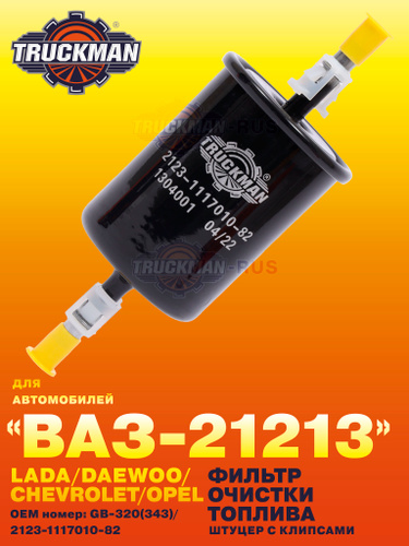 Фильтр очистки топлива для а/м ВАЗ-21213 LADA Нива Шевроле (штуцер с клипсами), TRUCKMAN