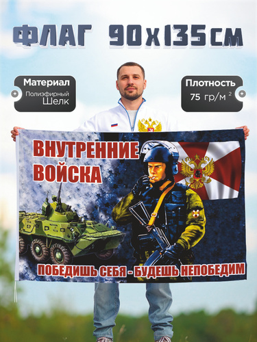 Флаг внутренние войска. Победишь себя-будешь непобедим, Полиэфирный шелк, 90-135см