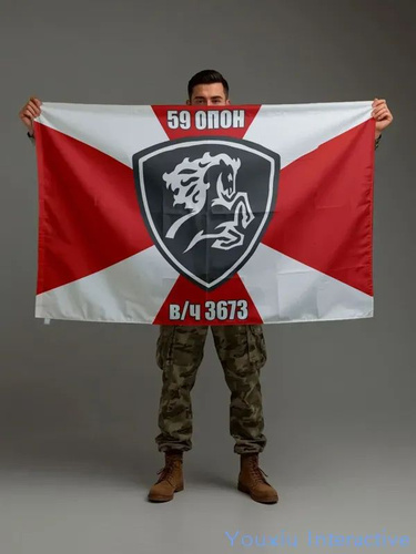Флаг 59 ОПОН в/ч 3673 Северо-Кавказского округа ВВ МВД РФ, 90х135 см на шёлке для ручного древка