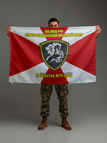 Флаг ВВ МВД РФ Северо-кавказский военный округ г.Шахты, в/ч 3722, 70х105 см на шёлке для ручного древка