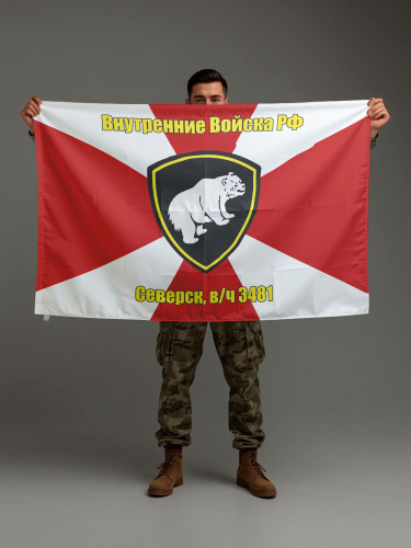 Флаг ВВ МВД РФ, Северск, в/ч 3481, 90х135 см на шёлке для ручного древка