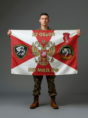 Флаг 22 ОБрОН ВВ МВД РФ с гербом с эмблемами, 90х135 см на шёлке для ручного древка