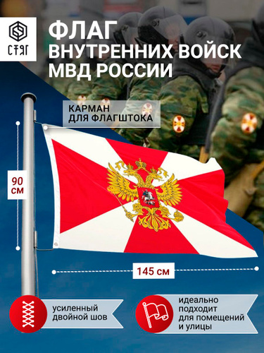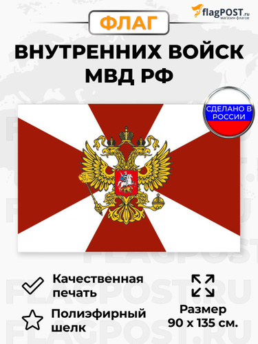 Флаг внутренние войска Российской Федерации с гербом МВД 145х90 Большой двухсторонний уличный с двойным швом