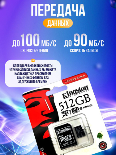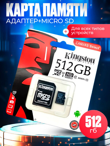 Карта памяти micro SD 512 ГБ // микро сд для телефона, ноутбука, камеры
