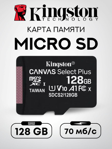 Kingston Canvas Select Plus 128 ГБ Карта памяти microSDXC, SDCS2/128GBSP, черная