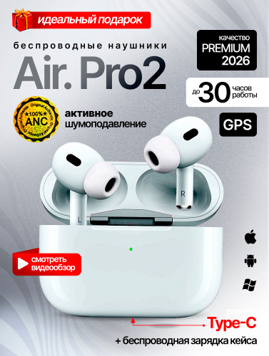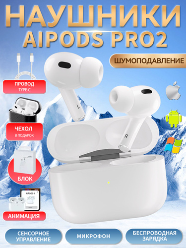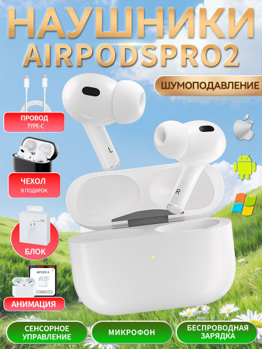 Наушники беспроводные AIPODS PRO 2 с шумоподавлением,TYPE-C,Для iPhone/Android/Windows,BLUETOOTH 5.3,Беспроводная зарядка,Сенсорное управление,Микрофон