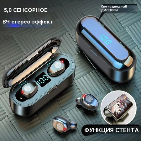 Беспроводные наушники TWS с подключением Bluetooth для Iphone / Android, с микрофоном, с чехлом.