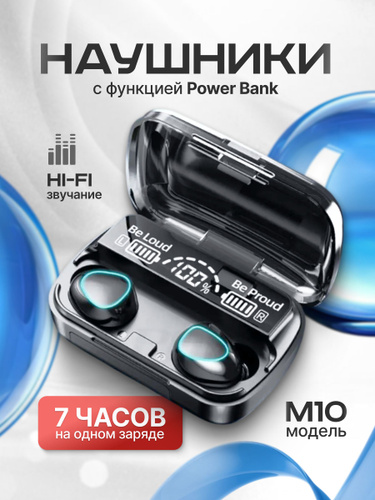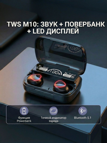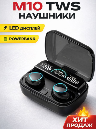 Беспроводные наушники M10 TWS bluetooth 5.3 с дисплеем и сенсорным управлением, вакуумные внутриканальные наушники с микрофоном для телефона android и iPhone, зарядный кейс powerbank, (2025 год)