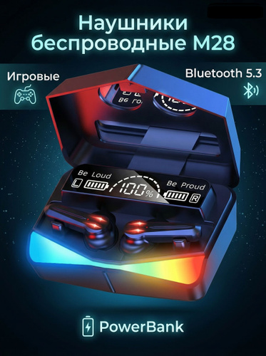 Беспроводные наушники M28 TWS Bluetooth 5.3, с микрофоном, игровой дизайн, с подсветкой, для Android и iPhone