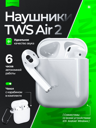 Беспроводные наушники TWS Air 2 c чехлом в комплекте, с микрофоном Bluetooth для смартфона Iphone, Android, белые 2026
