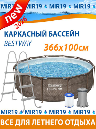 56709 Бассейн каркасный Steel Pro Max ротанг 366 x100 см с картридж. фильтр, лестница, 9150 л, BestWay,