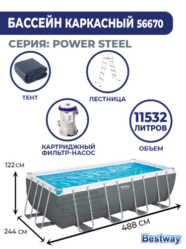 Бассейн каркасный BESTWAY Power Steel 488 х 244 х 122 см, 11532 л, 56670 BW