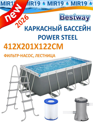 Каркасный прямоугольный бассейн Bestway 56456 (201 х 412 х 122 см) фильтр-насос, лестница