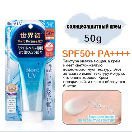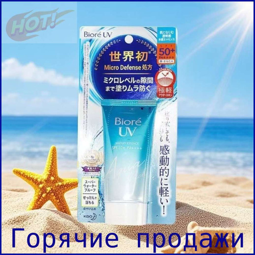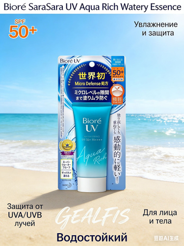 KAO Biore UV Aqua Rich Watery Essence Водостойкая солнцезащитная эссенция для лица и тела SPF50+ /PA+, с гиалуроновой кислотой и экстрактом маточного молочка, 70 г