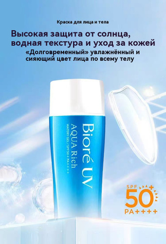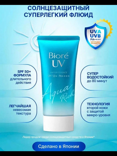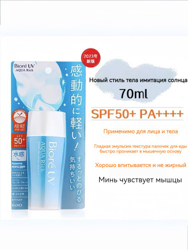 Biore UV Aqua Rich Солнцезащитный Флюид SPF50n 70г Водная текстура с гиалуроновой кислотой Нежный уход для чувствительной кожи