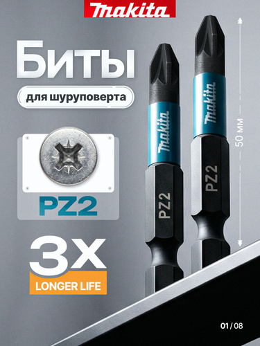 Бита Impact Black PZ2, 50 мм, Е-form (MZ), 2 шт Makita B-63753