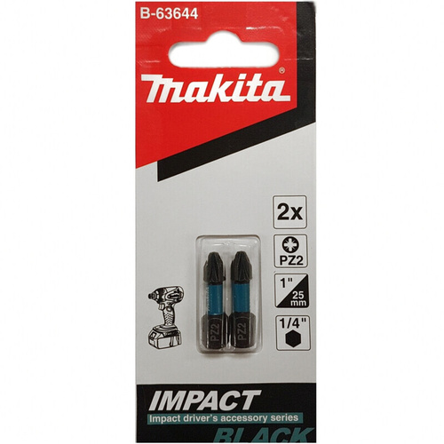 Бита Impact Black PZ2, 25 мм, C-form, 2 шт Makita B-63644