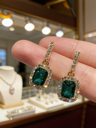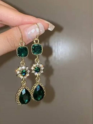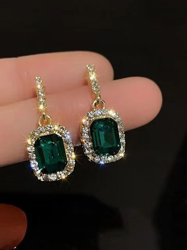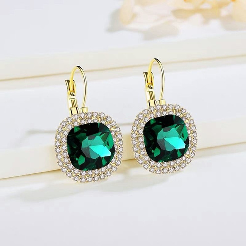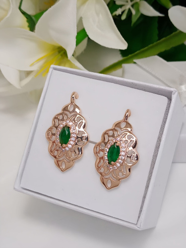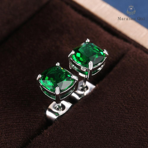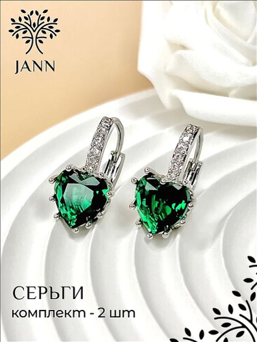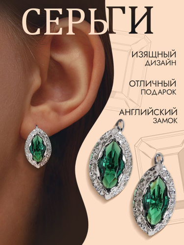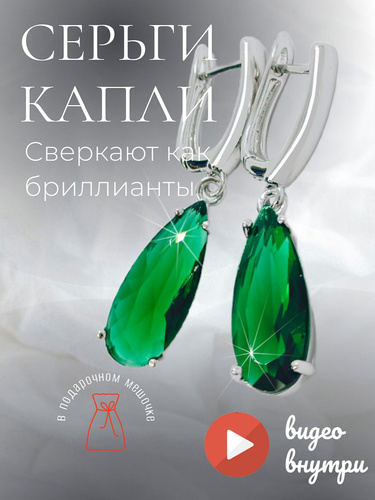 Серьги женские классические Капли с фианитами, в подарочном мешочке, цвет: серебренный, изумрудный