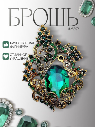 Брошь женская бижутерия "Ажур", цвет изумрудный в чернёном золоте, украшение на одежду