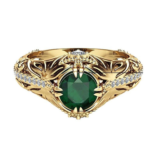 Кольцо "Золотой малахит" золото с изумрудной вставкой