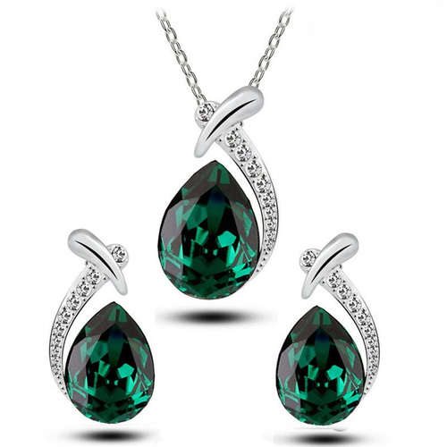 Комплект из подвески на цепочке и сережек "Изумрудный лес"
