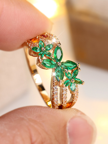 Кольцо с камнями и стразами "Великий изумруд", размер 18