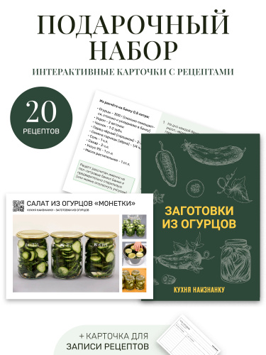 Карточки с рецептами от "Кухня наизнанку" - заготовки из огурцов (20 рецептов + карточка для записи)