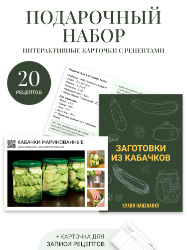 Подарочный набор: 20 карточек с рецептами Заготовки из кабачков + карточка для записи - Кухня наизнанку