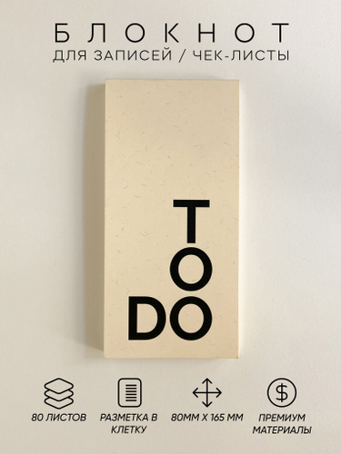 Блокнот To Do узкий для записей. Ежедневник для задач и заметок, кремовые листы