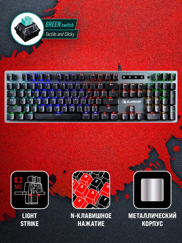 A4Tech Игровая клавиатура проводная , (LK Light Strike Green), серый