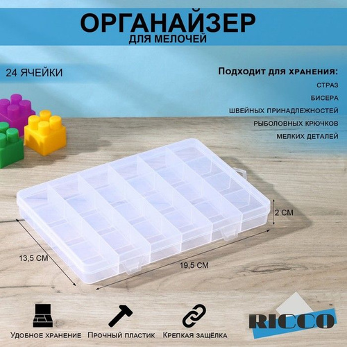 Бокс пластиковый для хранения, 24 отделения, 19,5х13,5х2 см